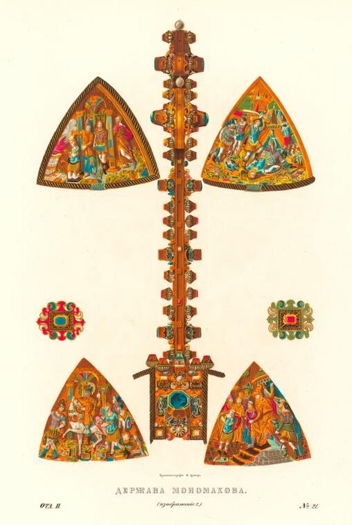 Это самая древняя сохранившаяся русская держава. Она является парной к скипетру, вместе с которым входил в парадное царское одеяние — «Большого», или Первого Наряда.