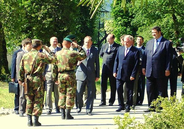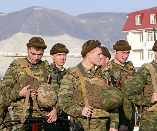 С апреля 2002 года из-за угрозы проникновения на российскую территорию боевиков со стороны Абхазии военнослужащие новороссийской ДШМГ выполняли служебно-боевые задачи по охране абхазского участка российско-грузинской границы. Первая командировка подразделения для усиления войсковой плотности охраны на участке Сочинского пограничного отряда длилась в течение восьми месяцев. В числе задач, возложенных на личный состав подразделения, были: защита, охрана и оборона государственной границы; осуществление разведывательно-поисковых мероприятий; выявление и задержание лиц, пытавшихся пересечь границу. В результате силами новороссийцев, взявших под контроль несколько основных перевалов, была решена одна из важнейших для государства задач ― создание базы, на основе которой в дальнейшем стало возможным более обстоятельное обустройство этого участка границы и осуществление деятельности по пресечению незаконных вторжений остатков бандформирований и контрабандистов на территорию Российской Федерации, поиску и задержанию браконьеров и других нарушителей пограничного режима. Как сообщил в одном из своих интервью начальник ДШМГ майор В. Синицын, это было необходимо по двум основным причинам: во-первых, из-за реальной угрозы проникновения на российскую территорию со стороны Абхазии террористов, а во-вторых, было важно демонстративно обозначить госграницу там, где ещё недавно люди о ней не знали.[37]