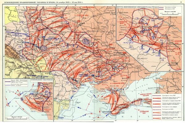 В результате третьего удара советскими войсками 3-го и 4-го Украинских фронтов и Отдельной Приморской армии во взаимодействии со 2-м Украинским фронтом и Черноморским флотом были разгромлены одесская и крымская группировки 17-й немецкой армии и был освобождён Крым. Третий удар начался Одесской операцией (26 марта — 14 апреля) и освобождением городов Николаев и Одесса войсками 3-го Украинского фронта. С 8 апреля по 12 мая проводилась Крымская операция, 13 апреля был освобождён Симферополь, 9 мая — Севастополь.