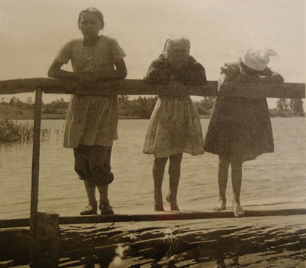 Картине из собрания Русского музея предшествовали два варианта, которые не удовлетворили художников[16]. В процессе работы над третьим художники убедились, что первоначальный вариант окончательной композиции полотна был перегружен деталями и лишними персонажами. В результате, в самом конце работы им пришлось записать уже присутствовавшие на картине лодку на воде и мальчугана, сидевшего на мостках вместе с девочками[17]. Художники на заключительной стадии создания картины использовали сделанные ими фотографии девочек из деревни Новые Котчищи, расположенной на реке Мста. Сохранилась и опубликована самими художниками в автобиографической книге «50 лет вместе (из нашей жизни)» фотография, изображающая трёх девочек, стоящих у перил мостков над рекой Мста. Фотография предположительно датируется 1960 годом[18]. Известны имена двух девочек, которые позировали художникам в процессе создания картины: Таня Филатова[13] и Катя (её фамилия не установлена)[14].
