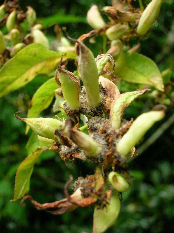 Стенки поражённых завязей уродливо разрастаются, семена не развиваются. У сливы «дутый плод» представляет собой вытянутое мешковидное образование с полостью внутри, которое затем покрывается спороносящим слоем гриба. У ольхи и тополя поражаются отдельные цветки в женских соцветиях, которые вздуваются или разрастаются в листовидные образования[1][2].