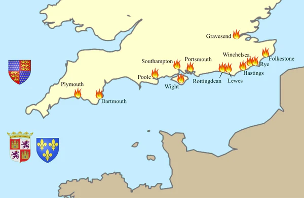 В 1377 году вместе с 13 галерами объединился с флотом де Вьена у Арфлёра, перед ними стояла цель высадить в ряде английских городов десант общей численностью в 5 тыс. человек. Ими были разграблены и сожжены порты Рай (29 июня 1377 года), Роттингдин (сухопутная операция), Льюис (20 июля), Фолкстон, Дарнмут, Плимут, Портсмут. 28 июля флот вернулся в Арфлёра для пополнения запасов. Через три недели был разграблен Остров Уайт, хотя замок взять не удалось, после чего одна часть кораблей отправилась в Винчелси (выдержал осаду), а вторая — в Гастингс и Пул (были разграблены).