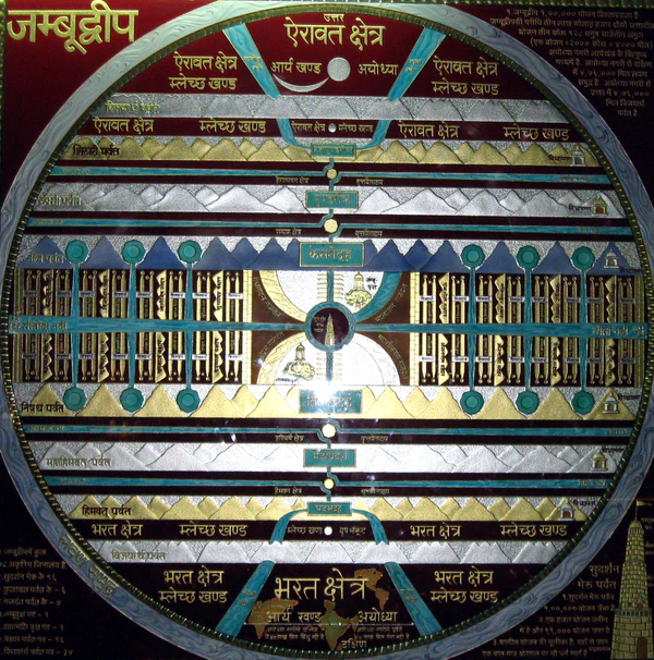 В буддийской и джайнской космологиях континент Джамбудвипа является местообитанием обычных людей. Сутра золотого блеска приписывает покровительство этому континенту четырем махараджам и упоминает о 84 тыс. городов в нём.