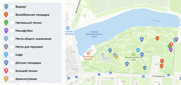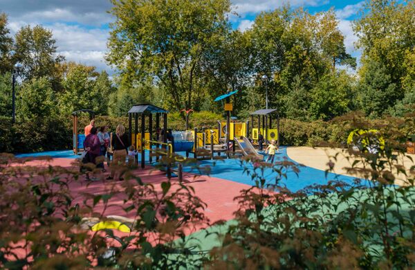 В парке есть спортивные зоны, детские площадки и места для спокойного отдыха.