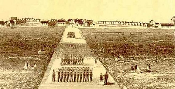 В августе 1877 года Джек проник в военный лагерь в Элдершоте. Ночью часовой у северных ворот лагеря заметил странную фигуру, «двигающуюся к нему». Солдат приказал незнакомцу остановиться, но ответа или остановки со стороны того не последовало. Неизвестный приблизился к солдату и внезапно несколько раз ударил его ладонью по лицу, причём прикосновения были описаны солдатом как «холодные, словно трупа». Часовой выстрелил в него в упор, но это не причинило нападавшему никакого вреда. Некоторые источники утверждают, что солдат выстрелил монтажным патроном, а другие — что сделал только предупредительный выстрел в воздух или вообще промахнулся. На крики часового прибежали его сослуживцы, однако Джек, заметив их, внезапно одним прыжком запрыгнул на калитку ворот лагеря и стоял там, смотря на них горящими глазами, и улыбался. Внезапно Джек снова спрыгнул вниз, выпустил из рта синее пламя и погнался за солдатами, чем их напугал. После этого странная фигура вновь перепрыгнула ворота и исчезла в темноте с «удивительной грацией»[18][19][20].