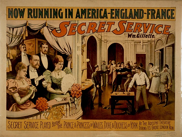 В 1895 году он написал пьесу Secret Service («Секретная служба»), которая впервые была показана в театре Брод-стрит в Филадельфии в течение двух недель, начиная с 13 мая 1895 года, с Морисом Бэрримором в главной роли. Джиллетт переписал часть сценария и сыграл главную роль в пьесе, когда она открылась в театре Гаррик 5 октября 1896 года. Это был первый раз, когда он взял на себя роль романтического героя в одной из своих собственных пьес. Постановка шла до 6 марта 1897 года и имела огромный успех у критиков и публики.