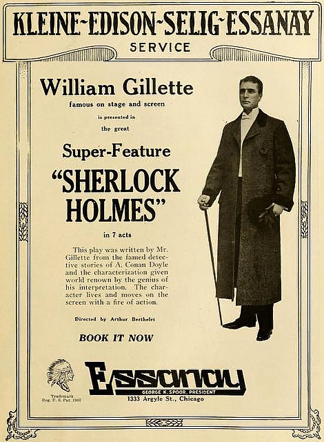 - 1922 — Sherlock Holmes («Шерлок Холмс»), Goldwyn Pictures, по пьесе Джиллетта, режиссёр Альберт Паркер. Джон Бэрримор сыграл Холмса. Уильям Пауэлл дебютировал на экране в роли Формана Уэллса в этом фильме, отреставрированном Джордж Истмен Хаус.