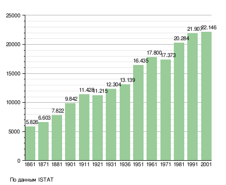 Население составляет 22 421 человек (2008 г.), плотность населения составляет 118 чел./км². Занимает площадь 187 км². Почтовый индекс — 74013. Телефонный код — 099.