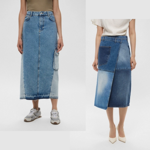 В тренде укороченные модели, чуть прикрывающие бёдра, а не ультракороткие варианты. Актуальны юбки с высокой талией, которые вытягивают силуэт. Из цветов, помимо классического индиго, популярны светло-голубой, чёрный и графитовый. Белый деним стал главным сюрпризом сезона. Трендовые коллекции есть у таких брендов, как Mango Outlet, Ami Paris и George[3].