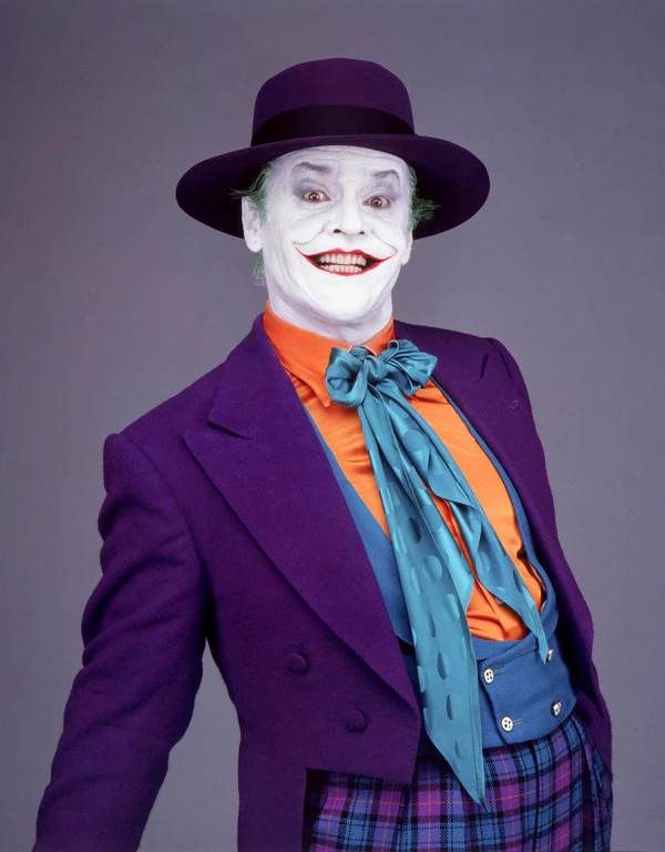 В соответствии с контрактом Николсона, ему было разрешено одобрить действия гримёра по созданию облика персонажа. В качестве гримёра Николсон выбрал Ника Дадмэна. Для обесцвеченного белого лица Дадмэн использовал грим на акриловой основе. Самым сложным для достижения эффекта Дадмэн назвал сцену в картинной галерее, где Напье обрызгивает водой Вики Вэйл. Чтобы создать улыбку, Дадмэн сделал обычный слепок лица Николсона с расслабленным лицом, а затем попросил его сделать ещё один слепок, изобразив самую большую ухмылку, на которую он был способен. Дадмэн пытался создать улыбку, которая всегда была на лице, но в полной мере проявлялась, когда Николсон улыбался в гриме; он также работал над тем, чтобы протезы не разбавляли лицо Николсона[17].