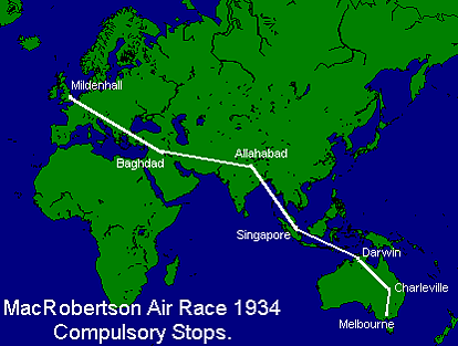 Не последнее место среди многообразия различных спортивных соревнований 1930-х годов занимает гонка коммерческих самолётов за приз Макробертсона. Приуроченная к столетию столицы штата Виктория, города Мельбурн, гонка прошла в период с октября по ноябрь 1934 года. Участники должны были преодолеть расстояние в 18 200 километров между аэродромами в графстве Суффолк в Англии и Флемингтон у Мельбурна. С целью повышения безопасности всех участников гонки, на трассе, пролегавшей через Багдад, Аллахабад, Сингапур и Дарвин, были устроены пять обязательных пунктов посадки и 22 заправочные станции.