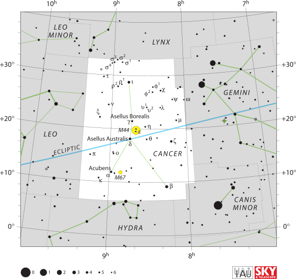 ζ Cancri: 16 Cancri • BD +18° 1867 • HIP 40167 • Σ 1196 • ADS 6650 • WDS J08122+1739 ζ Cancri AB: ζ1 Cancri • SAO 97645 ζ Cancri CD: ζ2 Cancri • HR 3210 • HD 68255 |