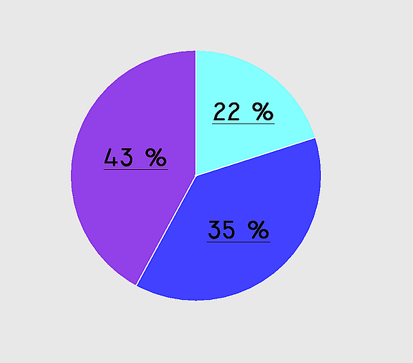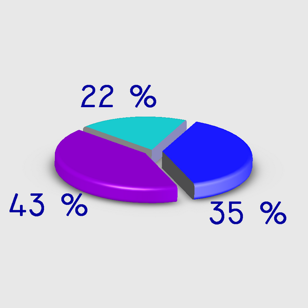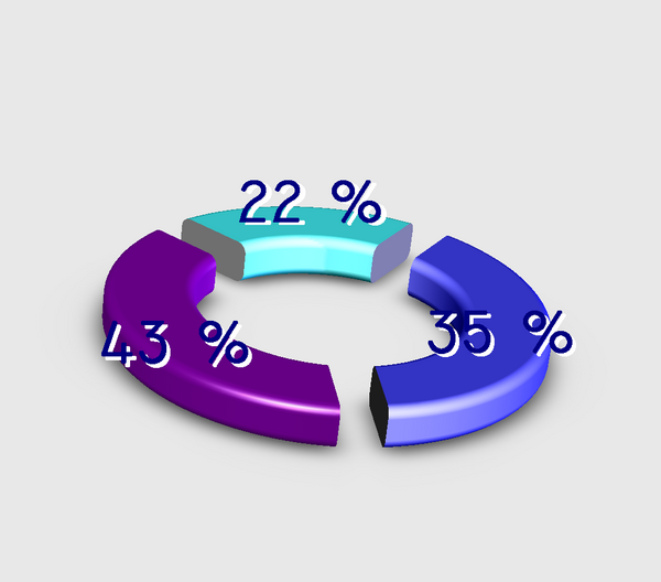 - «Отрёхмеренные» линейные, секторные и прочие. Имеют «солидный» вид, из-за этого часто используются в телевидении и бизнесе, однако тенденциозно показывают информацию: из-за незначащих поверхностей (боковой поверхности цилиндра в секторной, торца в столбцовой) и искажений трёхмерности закрашенная площадь не соответствует отображаемой величине. В частности, на втором рисунке искажения трёхмерности приводят к тому, что 22 % с виду почти того же размера, что и 35 %, а на третьем — 22 % почти вдвое меньше.