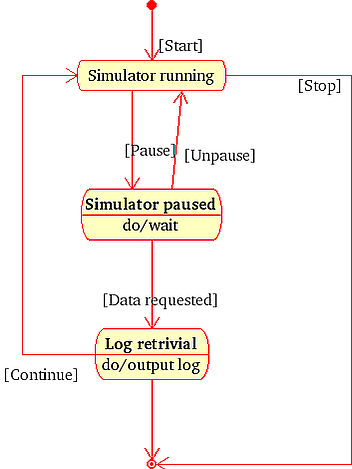 Диаграмма состояний — это, по существу, диаграмма состояний из теории автоматов со стандартизированными условными обозначениями[1] [2], которая может определять множество систем от компьютерных программ до бизнес-процессов. Используются следующие условные обозначения: