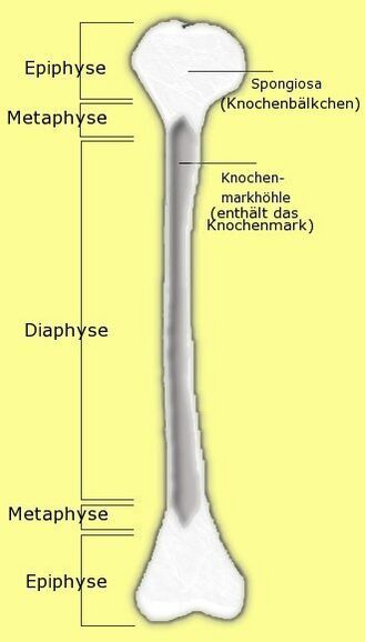 В диафизе расположен костномозговой канал, заполненный жёлтым костным мозгом (у детей — красным).