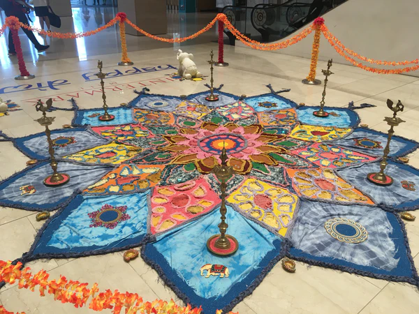 Одним из традиционных элементов декора праздника является ранголи — красочный рисунок-молитва, для создания которого используются цветной песок, подкрашенная рисовая вода и другие компоненты. Он представляет собой отражение природных мотивов и различных геометрических форм.