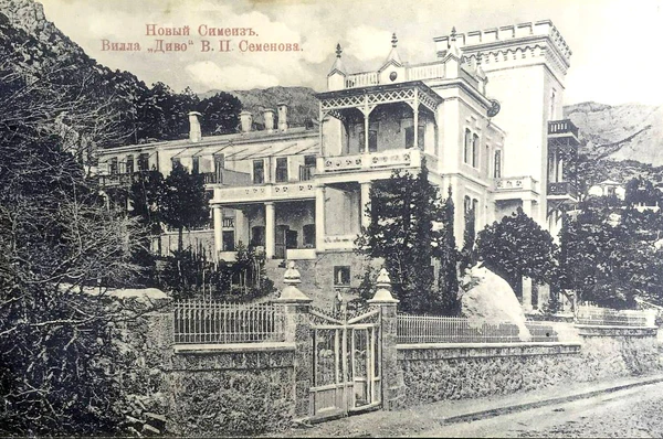 19 мая 1902 года В. П. Семёнов приобрёл у владельца Нового Симеиза Ивана Сергеевича Мальцова участок площадью 669 (по другим данным — 2302) квадратных саженей для постройки дома — это был первый проданный дачный участок и с этого дня принято считать основание курорта «Новый Симеиз»[2]. Автором проекта и строителем выступал Я. П. Семёнов