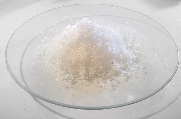 Расплавы кристаллогидратов, равно как концентрированные растворы дигидрофосфата натрия представляют собой вязкие мутные опалесцирующие жидкости, легко кристаллизующиеся при понижении температуры в полупрозрачную стекловидную массу.