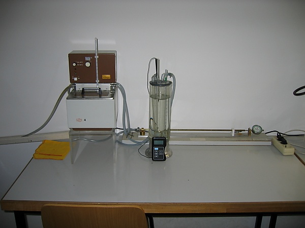 Как правило, такой дилатометр помещают в термостат с регулируемой температурой термостатирования. Для измерения температуры в непосредственной близости от дилатометра (либо же соприкасающийся с ним ) находится термометр[4].