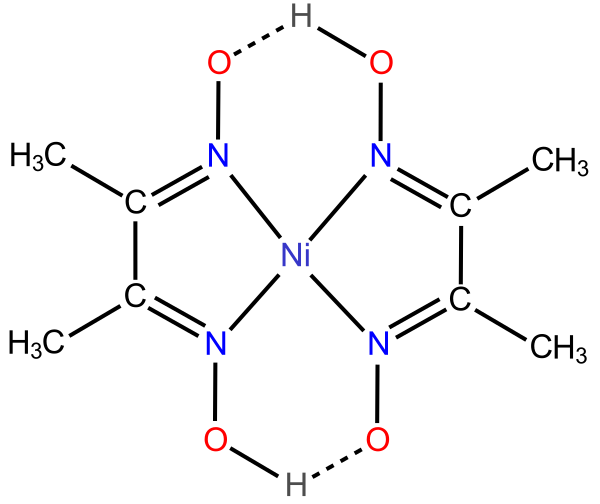 При взаимодействии с ионами никеля диметилглиоксим образует красный комплекс, который может быть легко осажден и определен гравиметрически.