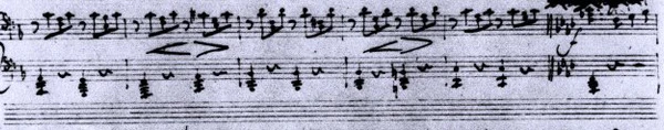 До середины XVIII века в музыке господствовала динамика форте и пиано, специальные знаки для обозначения которых были введены в XVI веке, которыми предположительно и определялись переход от пиано к форте (крещендо) и обратно (диминуэндо). Развитие скрипичной музыки в конце XVII — начале XVIII веков, в которой стали активнее использоваться крещендо и диминуэндо, потребовало создание особых знаков для их обозначения. С середины XVIII века композиторы стали прибегать к словесному обозначению крещендо и диминуэндо, хотя обозначения, похожие на современные, встречаются уже в произведениях Франческо Джеминиани (1739) и Франческо Марии Верачини (1744). Многие использовавшиеся до конца XVIII — начала XIX веков музыкальные инструменты (например, клавесин и клавикорд) не обладали техническими возможностями постепенного изменения силы звука, а орган получил такую способность только в XIX веке. Эта проблема была решена созданием фортепьяно[3].