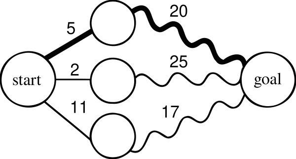 - Алгоритм Беллмана — Форда: найти кратчайший путь во взвешенном графе между двумя заданными вершинами.