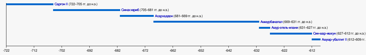 | Ашшур-надин-шуми правл. 700-694 гг. до н.э. (Вавилон) | Ашшур-или-мубаллиссу | Арда-Мулиссу | Ашшур-шуму-ушабши | Эшарра-хаммат (и другие женщины) | Асархаддон правл. 681-669 гг. до н.э. | Нергал-шуму-ибни | Набу-шар-ушур | Шадитту | |||||||||||||||||||||||||||||||||||||||||||||||||||||||||||||||||||||||||||||||||||||