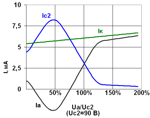 Динатронный эффект наиболее выражен в тетродах. В зависимости от соотношения напряжений на аноде и экранирующей сетке, а также от мер, принятых для подавления динатронного эффекта, он проявляется в разной степени: