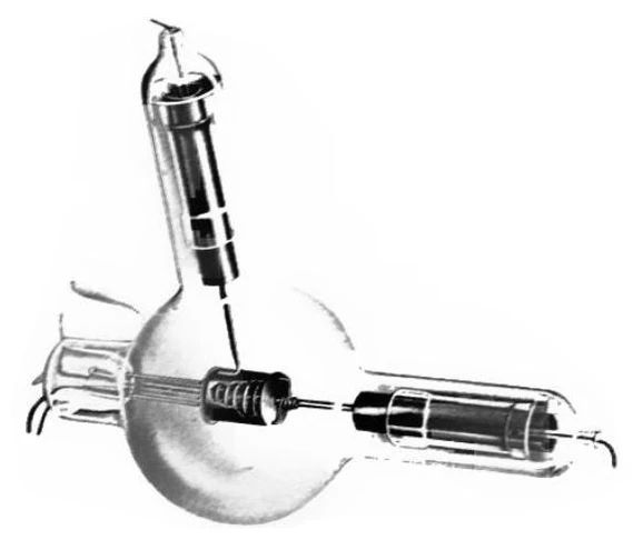 В вакуумном диоде или триоде, на сетку которого подано отрицательное управляющее напряжение, вторичные электроны притягиваются полем анода. Вблизи анода возникает узкая зона пространственного заряда, но покинуть её электроны не в состоянии. Если же на сетку триода подать положительное напряжение, превышающее напряжение анода, то часть вторичных электронов окажется способной покинуть поле анода и устремиться к сетке. Миллиамперметр в цепи анода зафиксирует снижение анодного тока, миллиамперметр в сети сетки — возникновение сеточного тока. Обычный приёмно-усилительный триод в ходе такого эксперимента неминуемо погибнет, однако ранние триоды 1920-х годов вполне допускали такой режим[7].