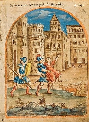 После этого Сихем уговорил своего отца разрешить ему брак с Диной. Правитель отправил сватов с дарами к Иакову, но братья Дины решили отомстить за изнасилование малолетней сестры.