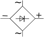 Рисунок 2. Упрощённое графическое обозначение диодного моста на принципиальных электрических схемах[1]. |
