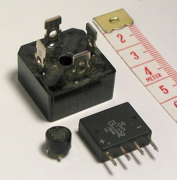 Мосты могут быть собраны из отдельных дискретных диодов и могут быть выполнены в виде однокорпусного изделия (диодные сборки).