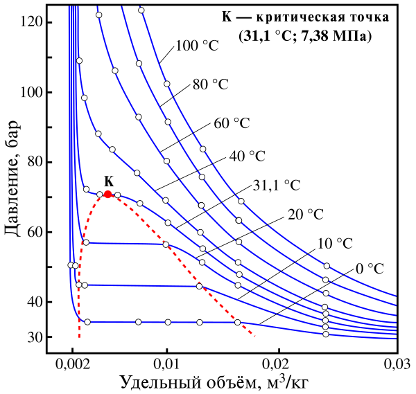- Фазовая диаграмма (давление-температура) для диоксида углерода