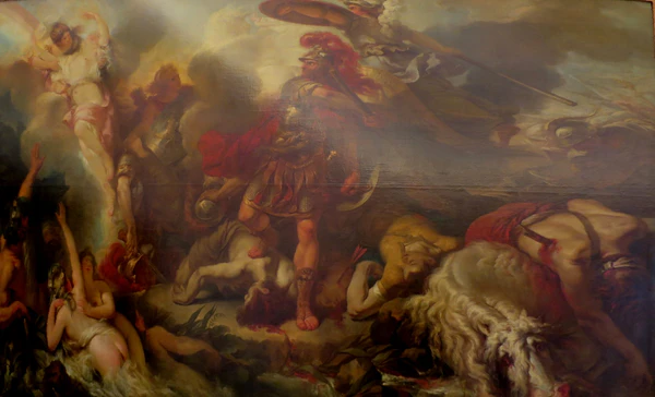 - И тот и другой вступает в бой с Энеем, ранив его. От неминуемой смерти троянского героя спасают олимпийские боги[59];