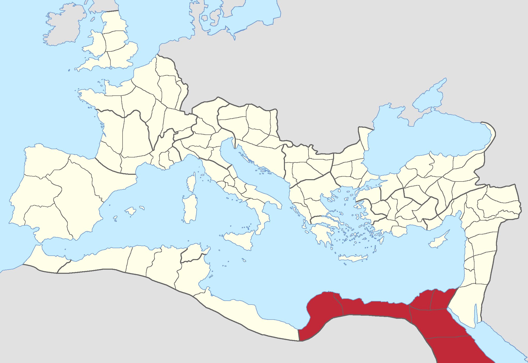 - Египет (западная дельта Нила), была основана в начале IV в. как Aegyptus Iovia, управлялась президом. Территория Нижнего Египта с центром в Александрии; бывшая провинция Aegyptus Iovia.