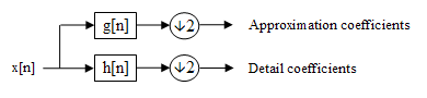 Одновременно сигнал раскладывается с помощью высокочастотного (high-pass) фильтра . В результате получаются детализирующие коэффициенты (после ВЧ-фильтра) и коэффициенты аппроксимации (после НЧ-фильтра). Эти два фильтра связаны между собой и называются квадратурными зеркальными фильтрами (QMF).