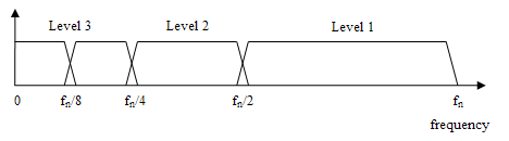 Например, для сигнала из 32 отсчётов с частотным диапазоном от 0 до трёхуровневое разложение даст 4 выходных сигнала в разных масштабах: