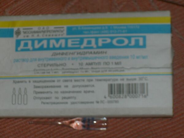 Дифенгидрами́н («Димедро́л») — антигистаминный препарат первого поколения. В практике обычно используется в форме гидрохлорида[1].