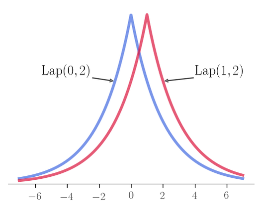 Механизм Лапласа добавляет шум из распределения Лапласа, плотность функции которого задаётся как , где среднее 0, а стандартное отклонение . Пусть функция результата алгоритма задаётся как , где .