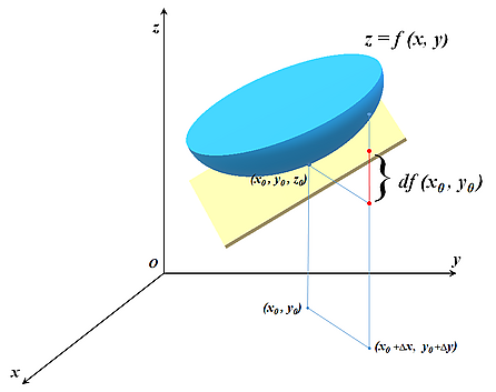Геометрически полный дифференциал есть приращение аппликаты касательной плоскости к поверхности в точке , где [9].
