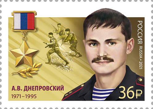 Андрей Владимирович Днепровский (6 мая 1971, Орджоникидзе — 21 марта 1995, Гойтен-Корт[d]) — российский военнослужащий, прапорщик. Служил в разведке Тихоокеанского флота, участвовал в контртеррористической операции в Чеченской Республике. Герой Российской Федерации (посмертно).