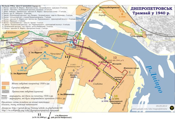 - Полный список актуальных маршрутов трамваев Днепропетровска Архивная копия от 27 сентября 2012 на Wayback Machine