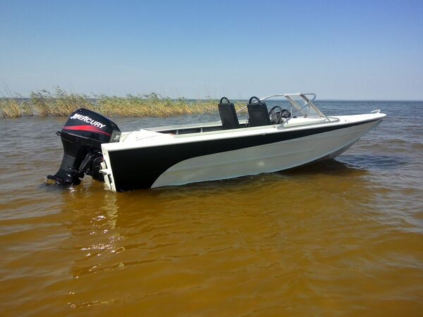 Моторная лодка может оснащаться подвесным мотором мощностью до 30 л. с. (Видео:)