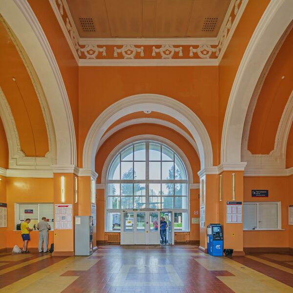 Современный вокзал построен в стиле сталинского ампира в 1950-е годы. В центре вокзала расположен зал ожидания и кассы. Фасады прорезаны с двух сторон широкими арочными окнами, здание увенчано башней с высоким шпилем. Эта башня является символом города Дно. Пролёты арок соединяют основную часть вокзала со служебными помещениями.