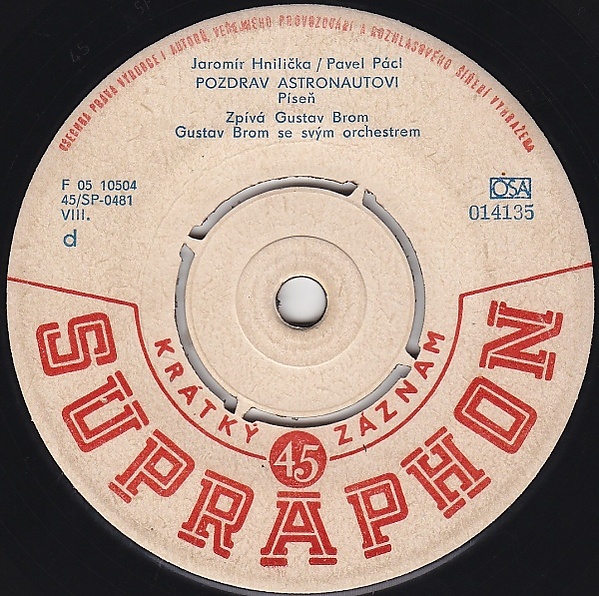 Оркестр Густава Брома записал песню 15 апреля 1961 года в студии Чешского радио[6]. Эта запись была издана чешской фирмой «Supraphon» (матричный номер 45/SP-0481, каталожный № 013422)[7]. На оборотной стороне грампластинки-сингла — речь Юрия Гагарина после космического полёта и песня другого исполнителя, также посвящённая первому космонавту. Песня была переиздана позднее на грампластинке с каталожным № 014035.