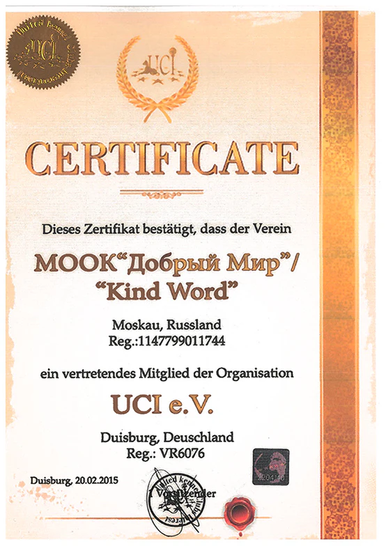 С 2000 года МАК «Добрый Мир» стала Генеральным представительством UCI в России[8].