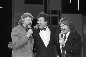Вячеслав Добрынин, Лев Лещенко, Юрий Антонов (слева направо) на юбилейном концерте Льва Лещенко «50 не 50»