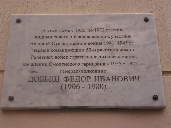 - Мемориальная доска в честь Ф. И. Добыша установлена в Смоленске по адресу: ул. Пржевальского, 6/25.