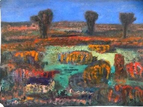 Композиция картины построена по законам пейзажа с акцентом на декоративную стилизацию форм и цвета. На первом плане среди густых зарослей оранжевых, красных и розовых цветов и кустарников изображена лужа, выполненная в различных оттенках зелёного — от изумрудного до бледно-зелёного, что подчёркивает богатство цветовой гаммы. На втором плане, на фоне ярко-синего неба, выделяются три тёмных дерева.