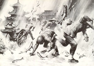 16 февраля 1861 года Сингапур перенёс землетрясение с последующими тремя днями обильных дождей. После окончания дождей жители Сингапура увидели, что в лужах лежат тысячи рыб. Коренные жители утверждали, что видели, как они упали с неба[3].